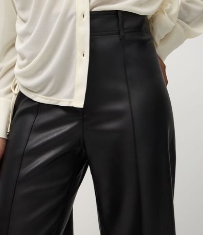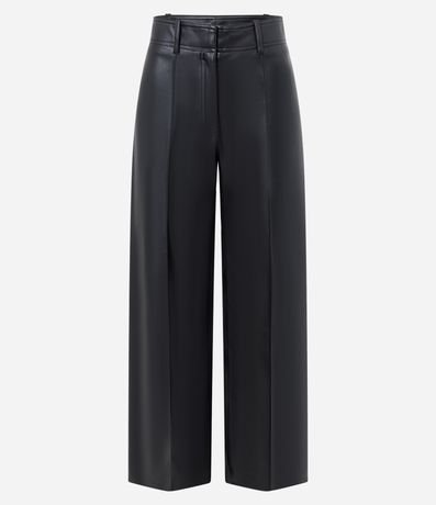 Ref: Calça feminina em PU com modelagem wide leg. Possui cós com passantes, fechamento frontal discreto, bolsos traseiros aplicados, criando visual moderno. Combina com ocasiões urbanas, trabalho casual, produções noturnas e eventos informais.