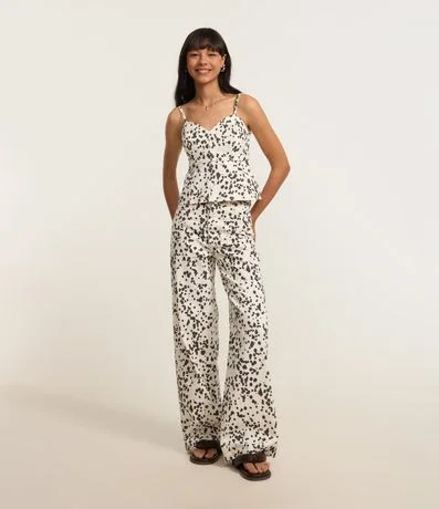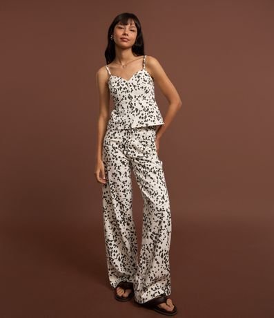 Calça Wide Leg em Sarja Animal Print