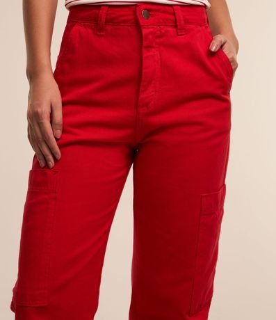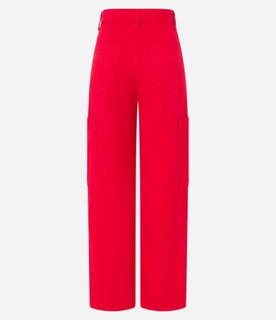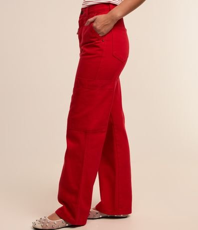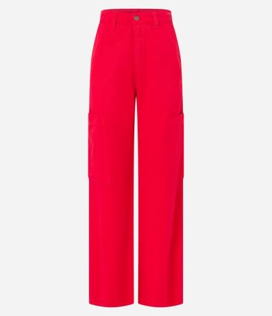 Calça Wide Leg em Sarja com Bolso Cargo sem Lapela