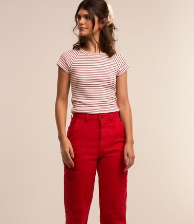 Calça wide leg, em sarja com bolso cargo sem lapela e confeccionada em material mais sustentável.