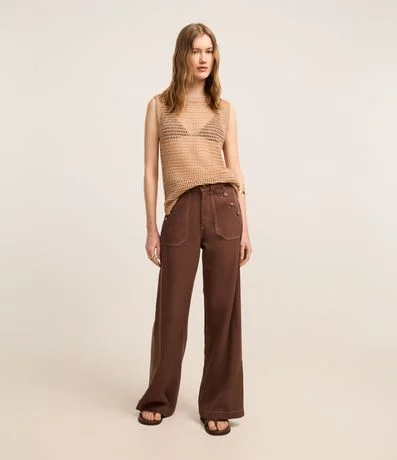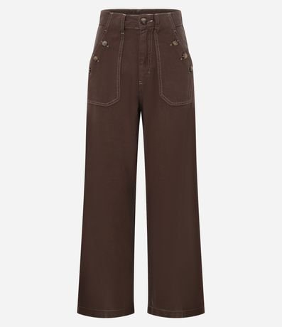 Ref: Calça wide leg confeccionada em sarja com liocel mais sustentável, bolsos carpinteiro e botões tartaruga.