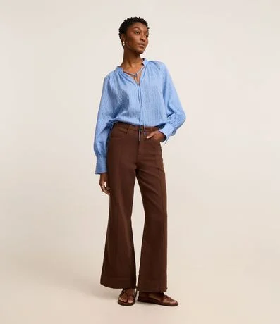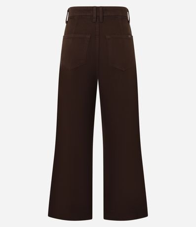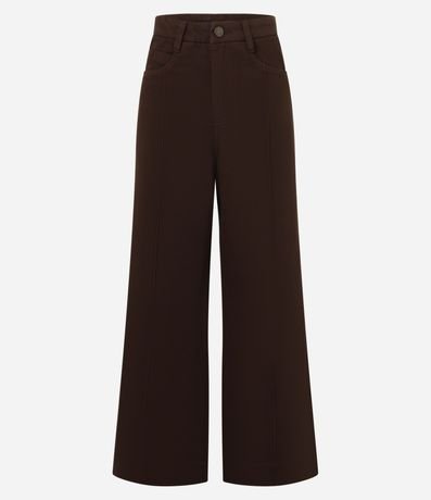 Ref: Calça wide leg confeccionada em sarja, cintura alta e cós com passantes, bolsos frente e costas, friso frontal e sem estampa.