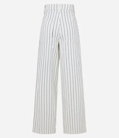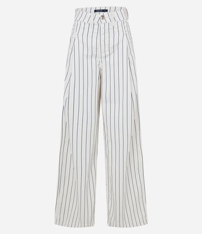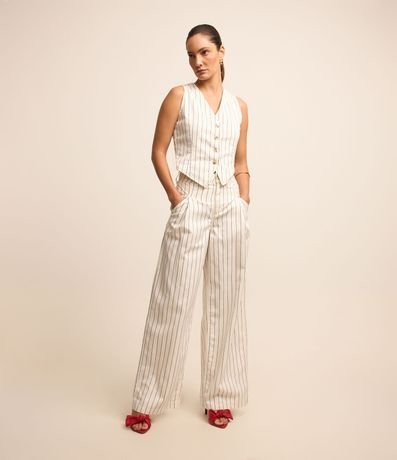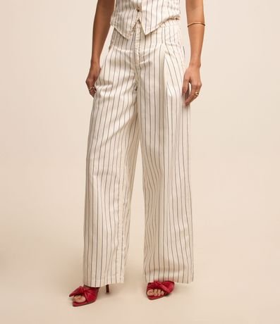 Ref: Calça wide leg confeccionada em sarja, listrada com pregas frontais e bolsos.