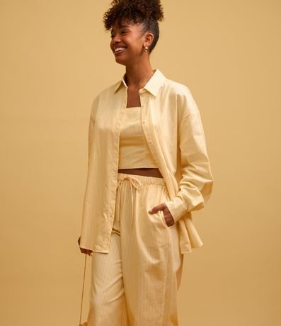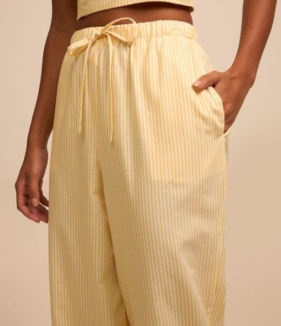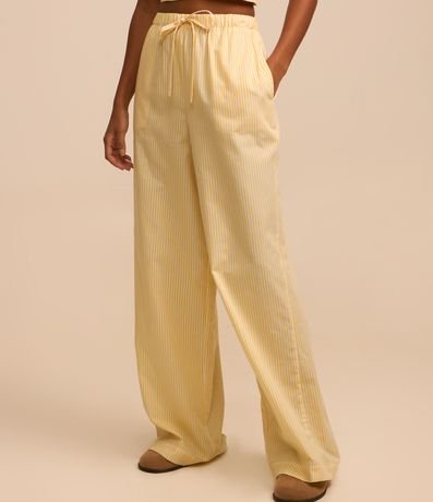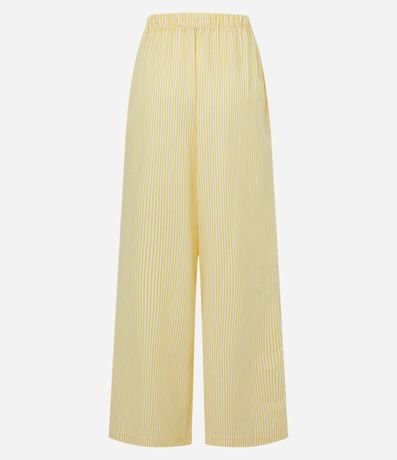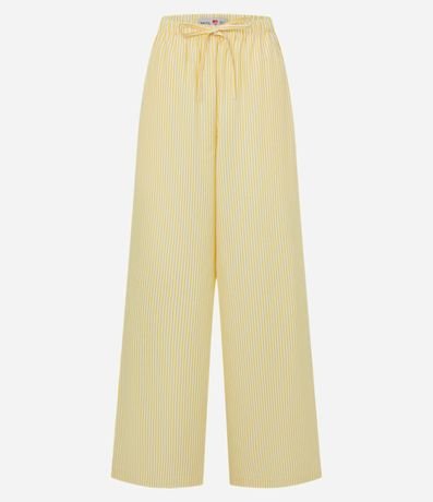 Ref: Calça wide leg com cordão no cós para ajuste, listrada com fio tinto e confeccionada em tricoline.