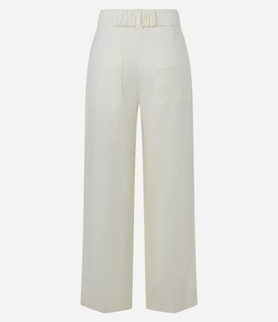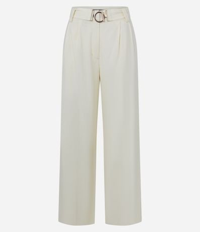 Calça wide leg confeccionada em viscolinho, com cintura alta, cós passante com cinto em metal, fivela redonda e fechamento por encaixe.