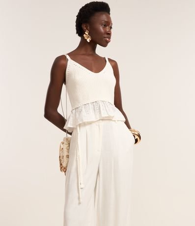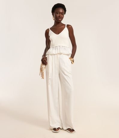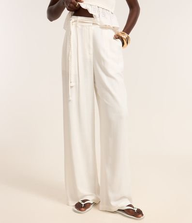 Ref: Calça wide leg de cintura alta, confeccionada em viscolinho, com passantes no cós, elástico atrás do cós, fechamento tradicional, pregas e cinto de corda. Este produto possui viscose certificada em sua composição, sendo ambientalmente mais responsável.