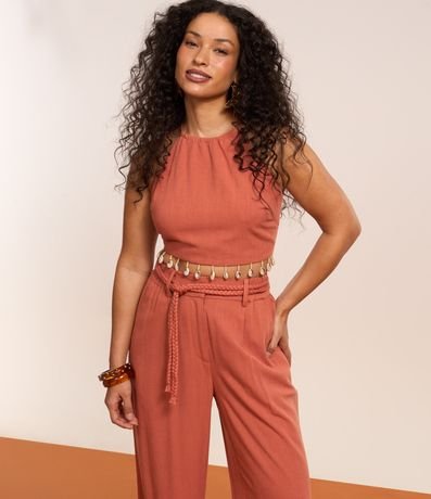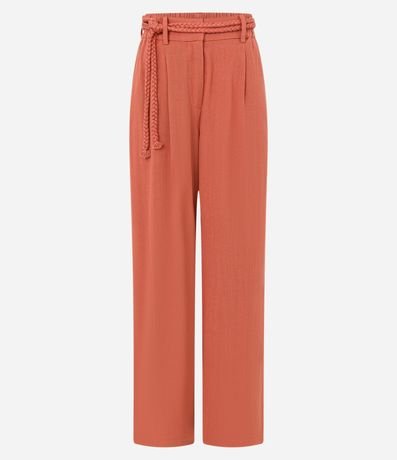 Ref: Calça wide leg de cintura alta, confeccionada em viscolinho, com passantes no cós, elástico atrás do cós, fechamento tradicional, pregas e cinto de corda. Este produto possui viscose certificada em sua composição, sendo ambientalmente mais responsável.