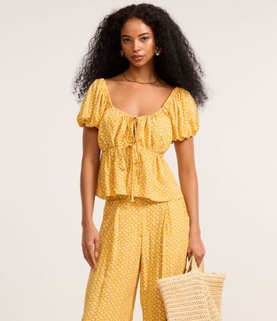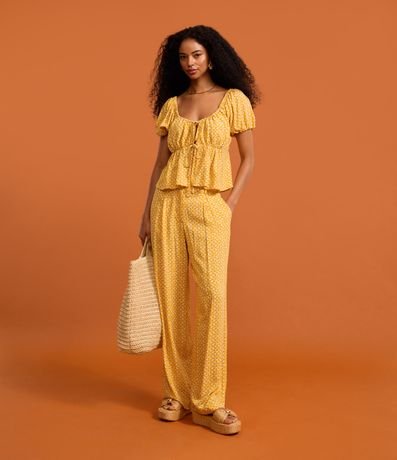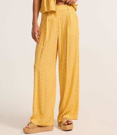 Ref: Calça wide leg feminina, confeccionada em viscose twill, com cintura alta e padronagem gravataria. Possui passantes no cós, pregas e fechamento frontal.