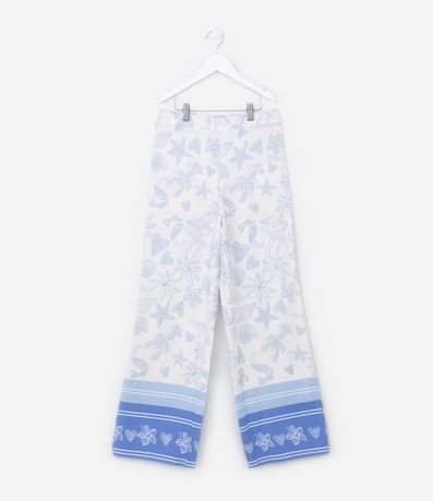Calça Wide Leg Infantil com Estampa Fundo do Mar - Tam 5 a 14 Anos