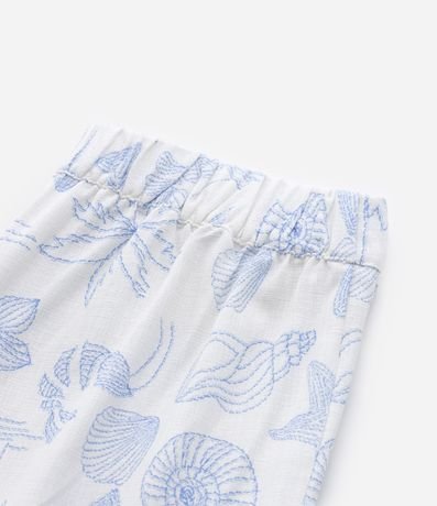 Calça infantil de modelo wide leg, com cós elástico e estampa fundo do mar. A peça é confeccionada em viscose e linho.