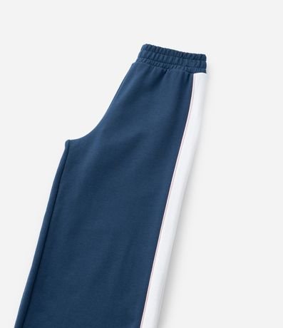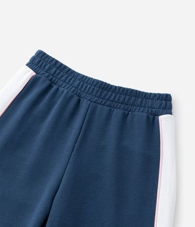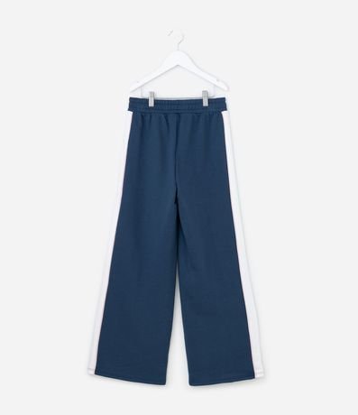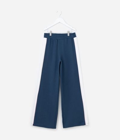 Ref: Calça infantil de modelo wide leg, confeccionada em moletom sem forro fleece. Possui cós com elástico e recorte lateral contrastante. Item feito a partir de material e processo mais sustentável.