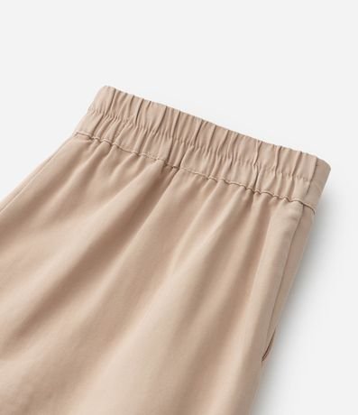 Calça infantil confeccionada em viscose, com corte alfaiatado, cós elástico e detalhes de pregas na frontal.