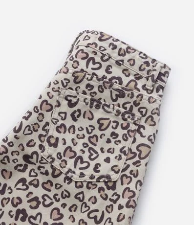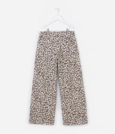 Ref: Calça infantil no modelo wide leg, confeccionada em jeans, com bolsos e estampa de oncinha.