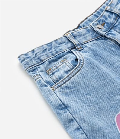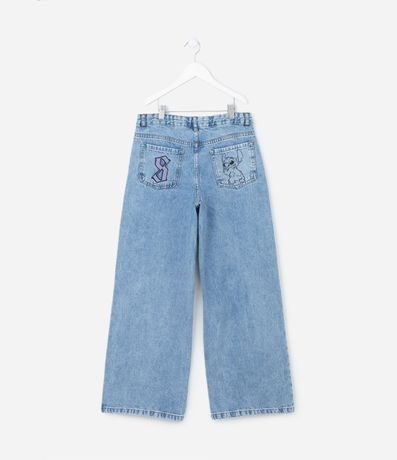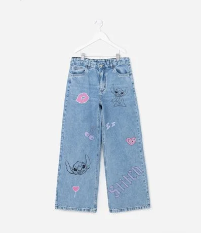 Ref: Calça infantil confeccionada em jeans, no modelo wide leg, com bolsos e estampa do Stitch, do filme Lilo e Stitch da Disney.