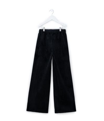 Ref: Calça infantil de modelo wide leg, confeccionada em plush com toque aveludado, possui cós elástico e textura caneladinha.