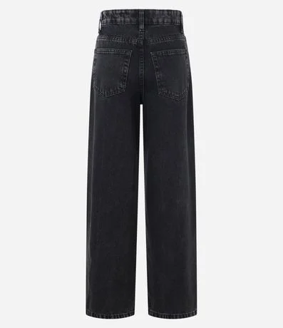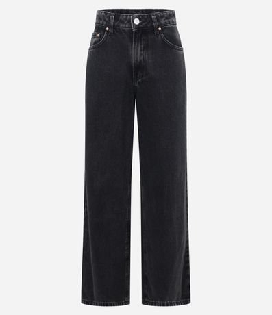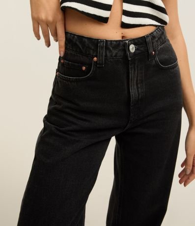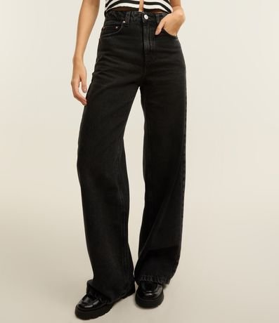 Ref: Calça wide leg jeans com bolsos e barra feita. Confeccionada em jeans, com detalhes metalizados nos bolsos e fechamento frontal tradicional.