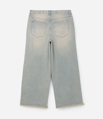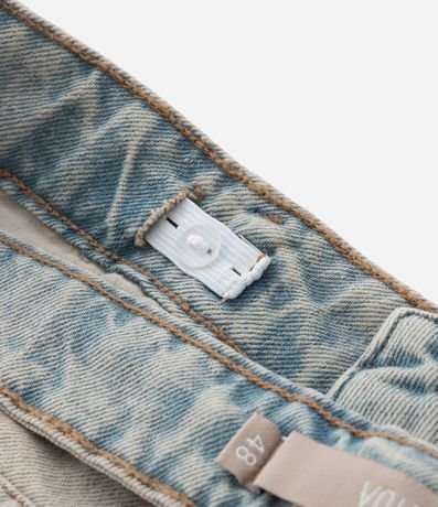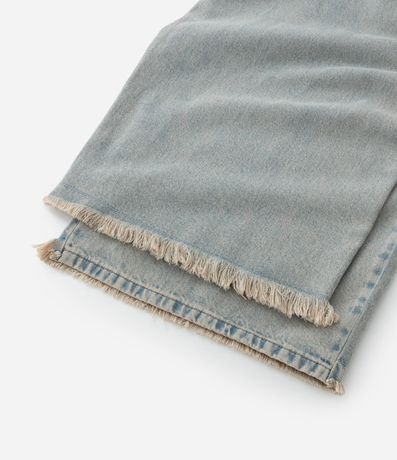 Ref: Wild leg jeans com lavagem dirty, barra desfiada e ajuste elástico no interior do cós.