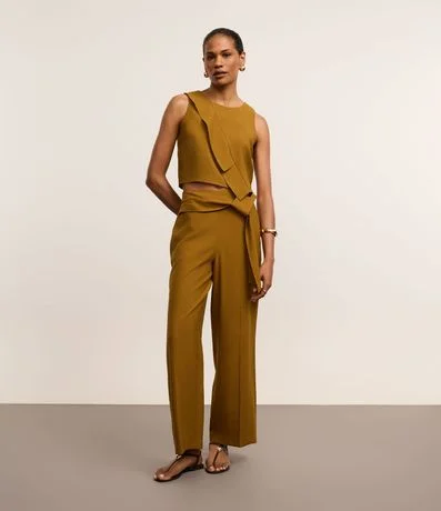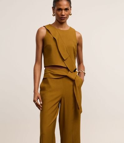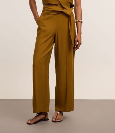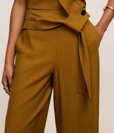 Ref: Calça wide leg com cintura alta, alfaiatada com bolsos laterais, faixa com botão no cós e confeccionada em viscose certificada mais sustentável.
