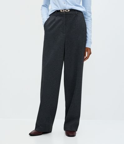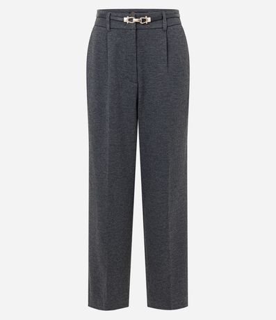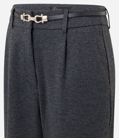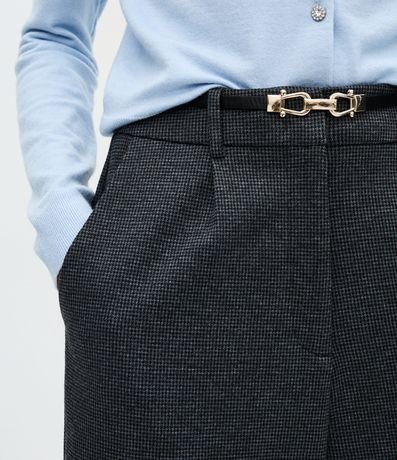 Ref: Calça feminina em ponto roma com estampa xadrez. Possui caimento reto, cós estruturado, pregas frontais, passantes e cintinho fino com fivela metálica.