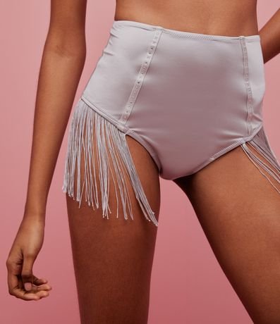 Ref: Calcinha alta confeccionada em microfibra leve, com detalhe de strass e franjas nas laterais.
