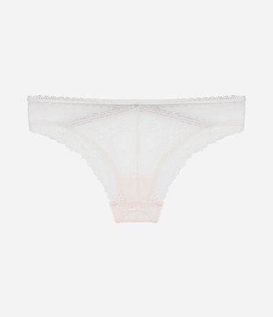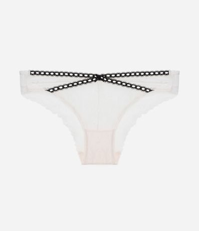Calcinha de laise, modelo biquíni, com detalhe cruzado contrastante.