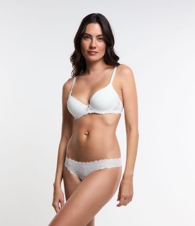 Calcinha biquíni confeccionada em laise, com textura floral e laterais médias.