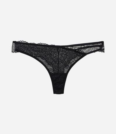 Calcinha biquíni fio feminina, confeccionada em renda, com lateral média e detalhe cut out.