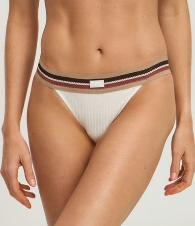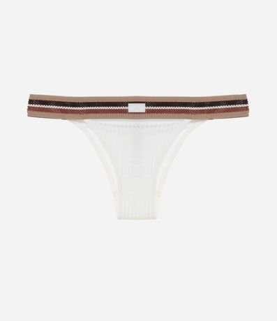 Ref: Calcinha biquini fio confeccionado em viscose mais sustentável através de boas práticas ambientais. Possui cós elástico com estampa listrada horizontal.