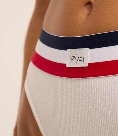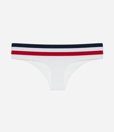 Ref: Calcinha feminina de modelo biquíni, fio, sem costura e com detalhe de listras no cós.