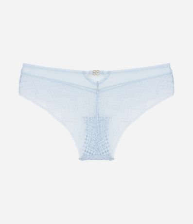 Ref: Calcinha boyshort em renda floral com elástico no cós e detalhe metalizado.