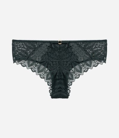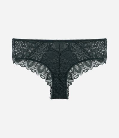 Ref: Calcinha boyshort em renda floral com elástico no cós e detalhe metalizado.