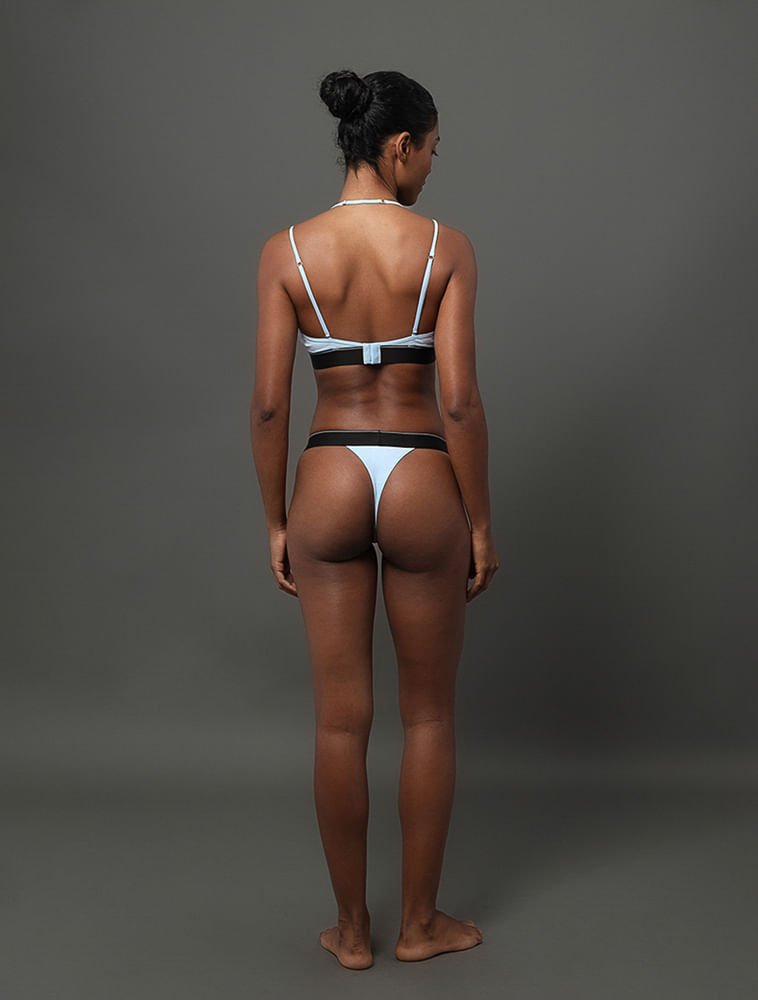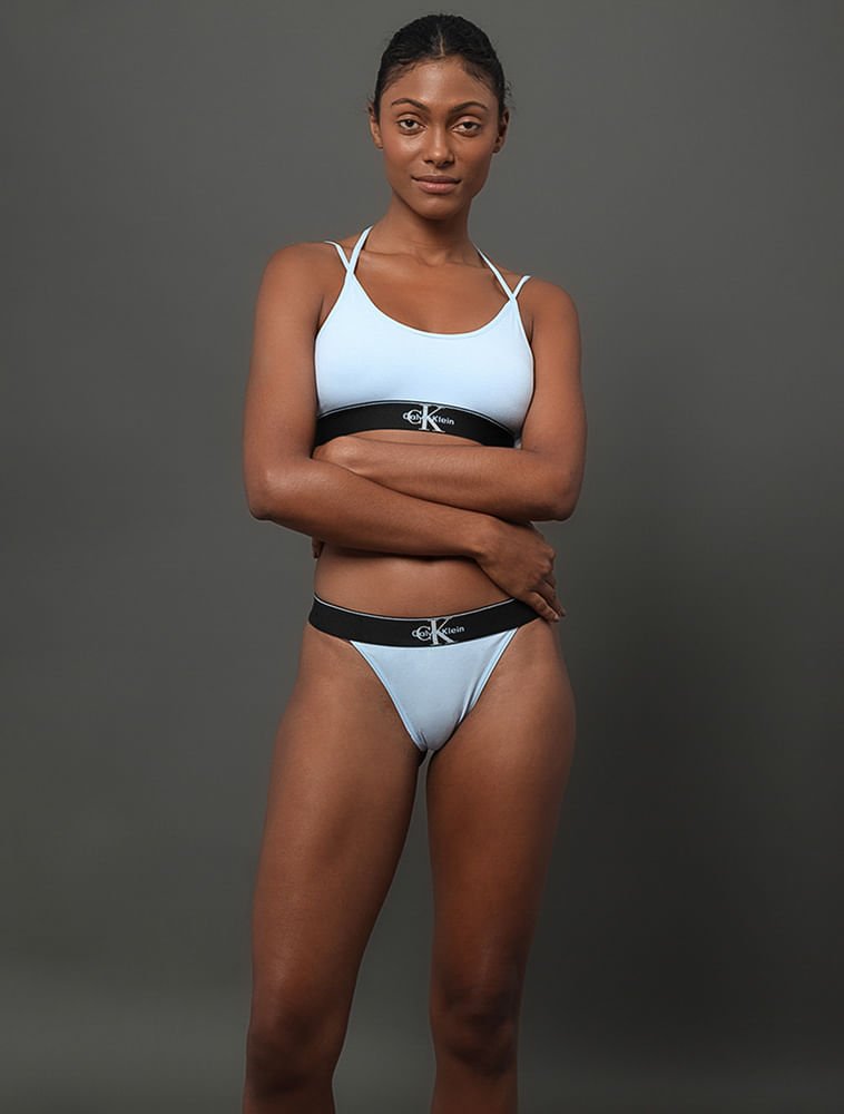 Calcinha Fio Dental Cotton Monogram Calvin Klein Underwear - Azul Claro