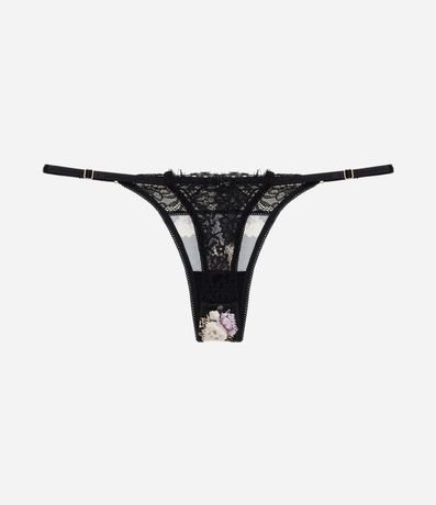 Ref: Calcinha feminina confeccionada em microfibra, no modelo string. Peça fio duplo, laterais finas, detalhes de renda e estampa floral.