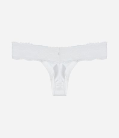 Calcinha de microfibra modelo string. A peça tem laterais de renda e fio duplo no bumbum.