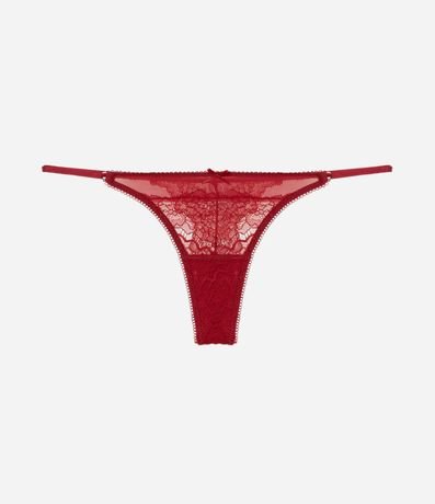 Peça avulsa de lingerie confeccionada em renda floral. A calcinha string tem fio duplo no bumbum e laterais finas reguláveis.