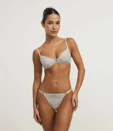 Ref: Calcinha string regulável em tule com bordado de laços. Lingerie com forro.