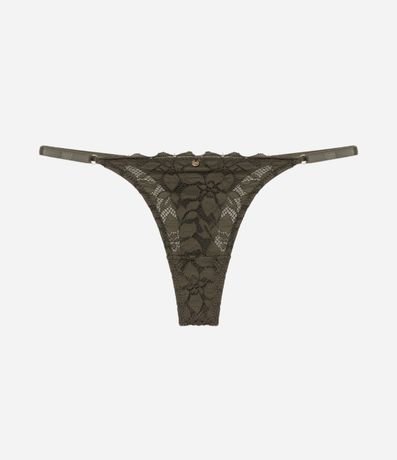 Ref: Calcinha feminina confeccionada em renda, no modelo string. Peça fio dental, com textura floral, laterais finas e medalhinha.