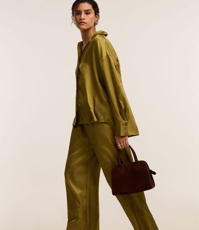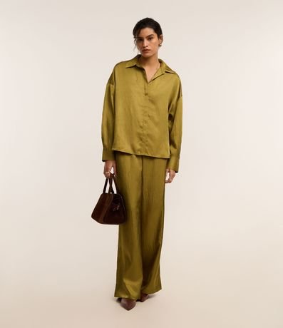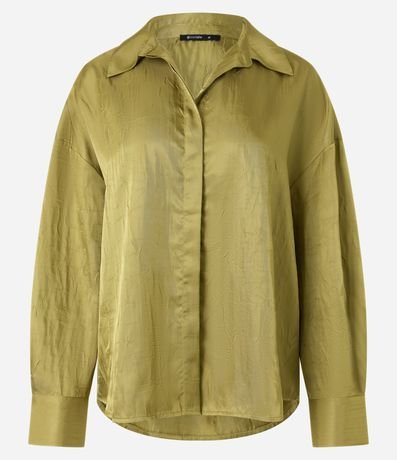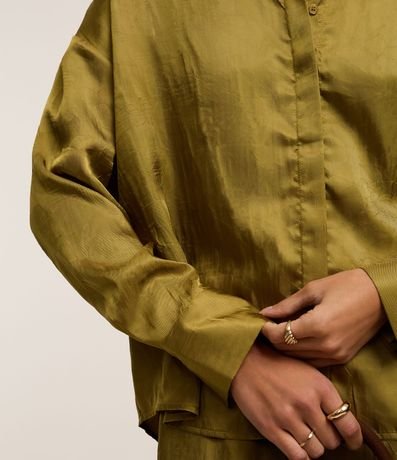 Ref: Camisa manga longa com textura acetinada, sem estampa e com fechamento por botões frontais.