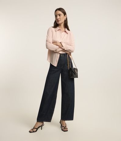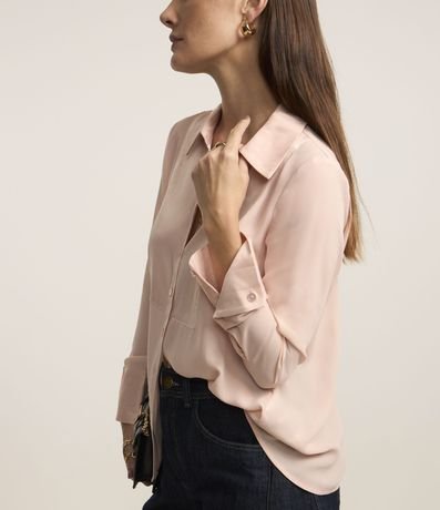Camisa de mangas longas em crepe com colarinho na gola e abotoamento frontal.
