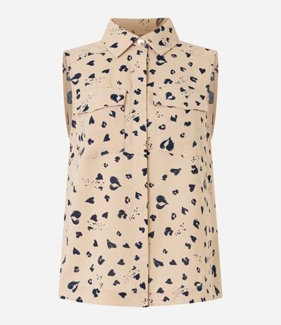 Camisa Airflow Sem Manga e Gola com Estampa Animal Print com Corações