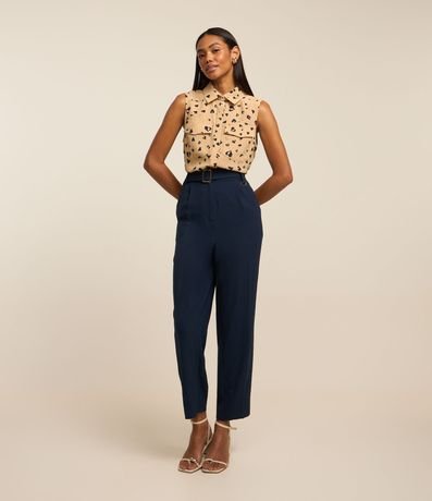 Camisa sem manga, confeccionada em poliéster, bolso com lapela no peito e abotoamento frontal.