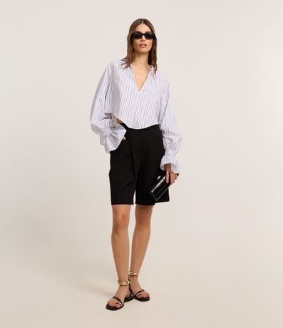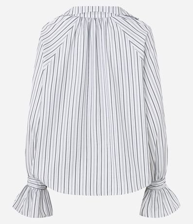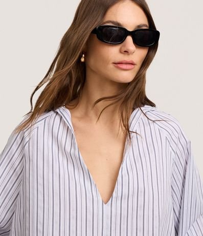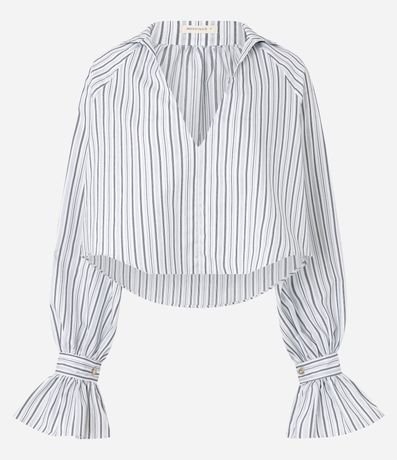 Ref: Camisa alfaiatada, em algodão, com colarinho na gola V, mangas longas com punhos diferenciados. Peça com listras verticais de fios tintos. Este produto possui algodão certificada BCI em sua composição, sendo ambientalmente mais responsável.