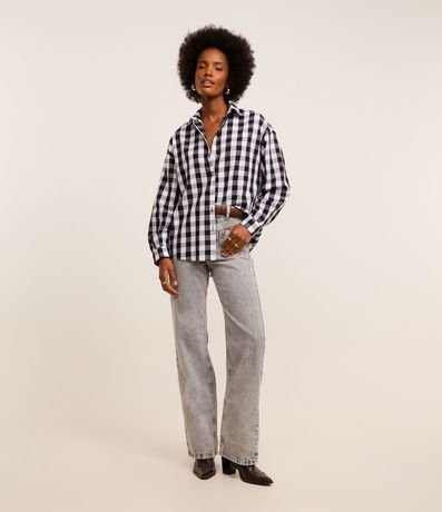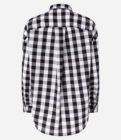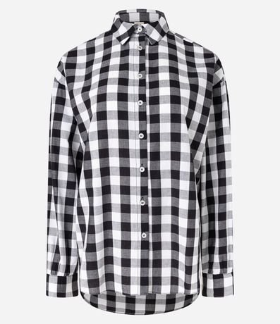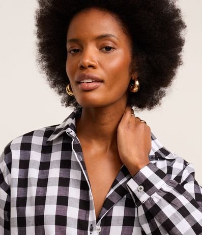 Ref: Camisa de comprimento alongado e mangas longas, toda confeccionada em algodão certificado BCI, com colarinho na gola e botões frontais. Peça tem estamparia xadrez,