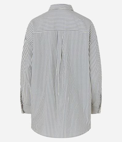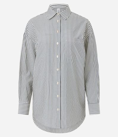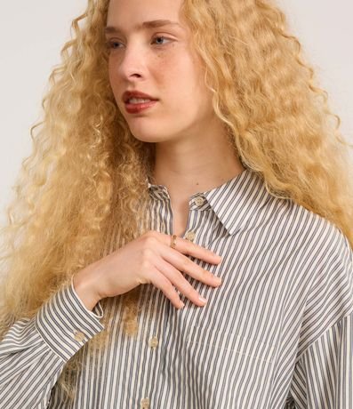 Camisa Alongada em Tricoline Listrada e Punho Largo