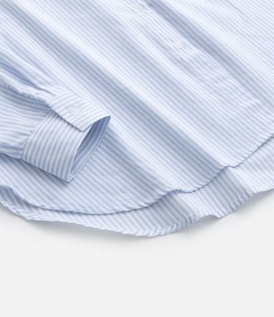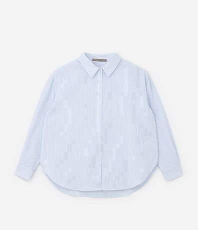 Ref: Camisa listrada, modelo alongado, confeccionada em tricoline de algodão mais sustentável. A peça tem mangas longas, abotoamento frontal, gola tradicional e barra arredondada.