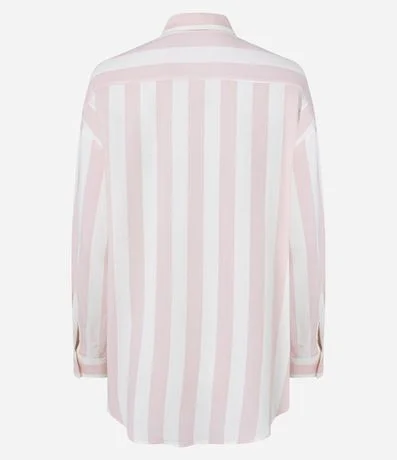 Ref: Camisa alongada de mangas longas, confeccionada em viscolinho, com colarinho na gola, botões frontais e listras veticais