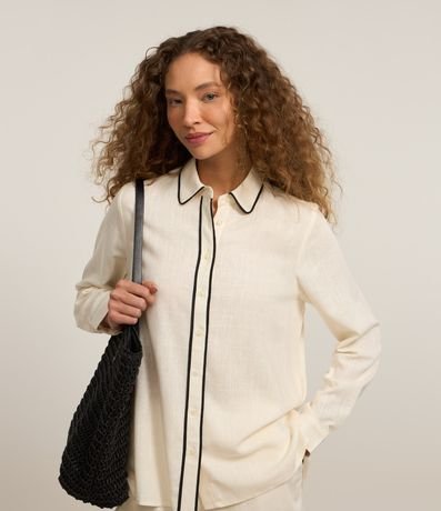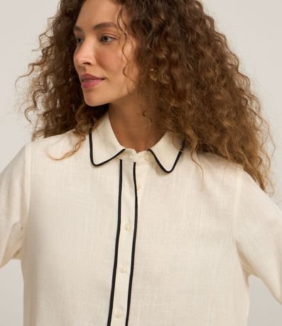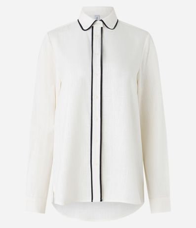 Camisa alongada com manga longa, abotoamento frontal detalhe contrastante e confeccionada em viscose com linho.