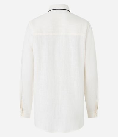 Camisa Alongada em Viscose e Linho com Detalhe Contrastante