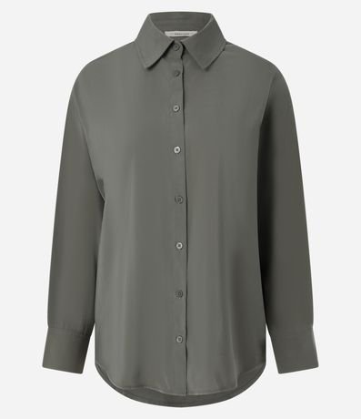 Ref: Camisa de mangas longas, confeccionado em cupro, com colarinho na gola e botões frontais. Este produto possui viscose certificada em sua composição, sendo ambientalmente mais responsável.