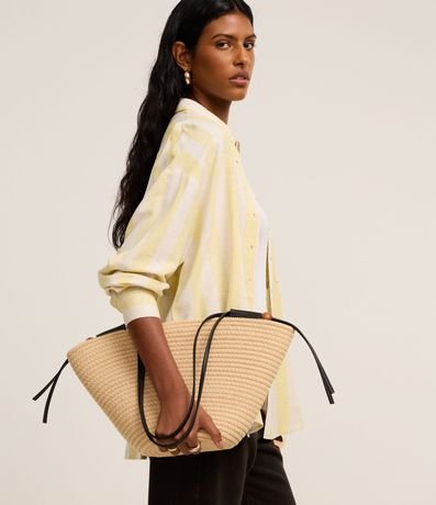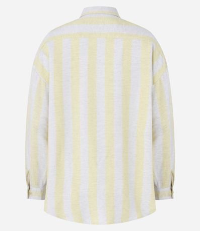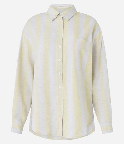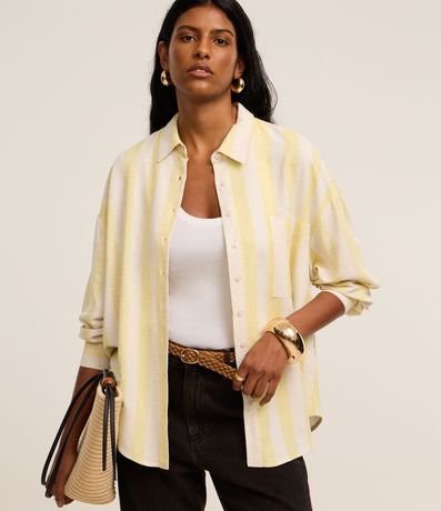Ref: Camisa ampla de mangas curtas, confeccionada em viscolinho com 19% de linho, com colarinho na gola, abotoamento frontal e listras largas verticais. Este produto possui fio reciclado em sua composição, sendo ambientalmente mais responsável.